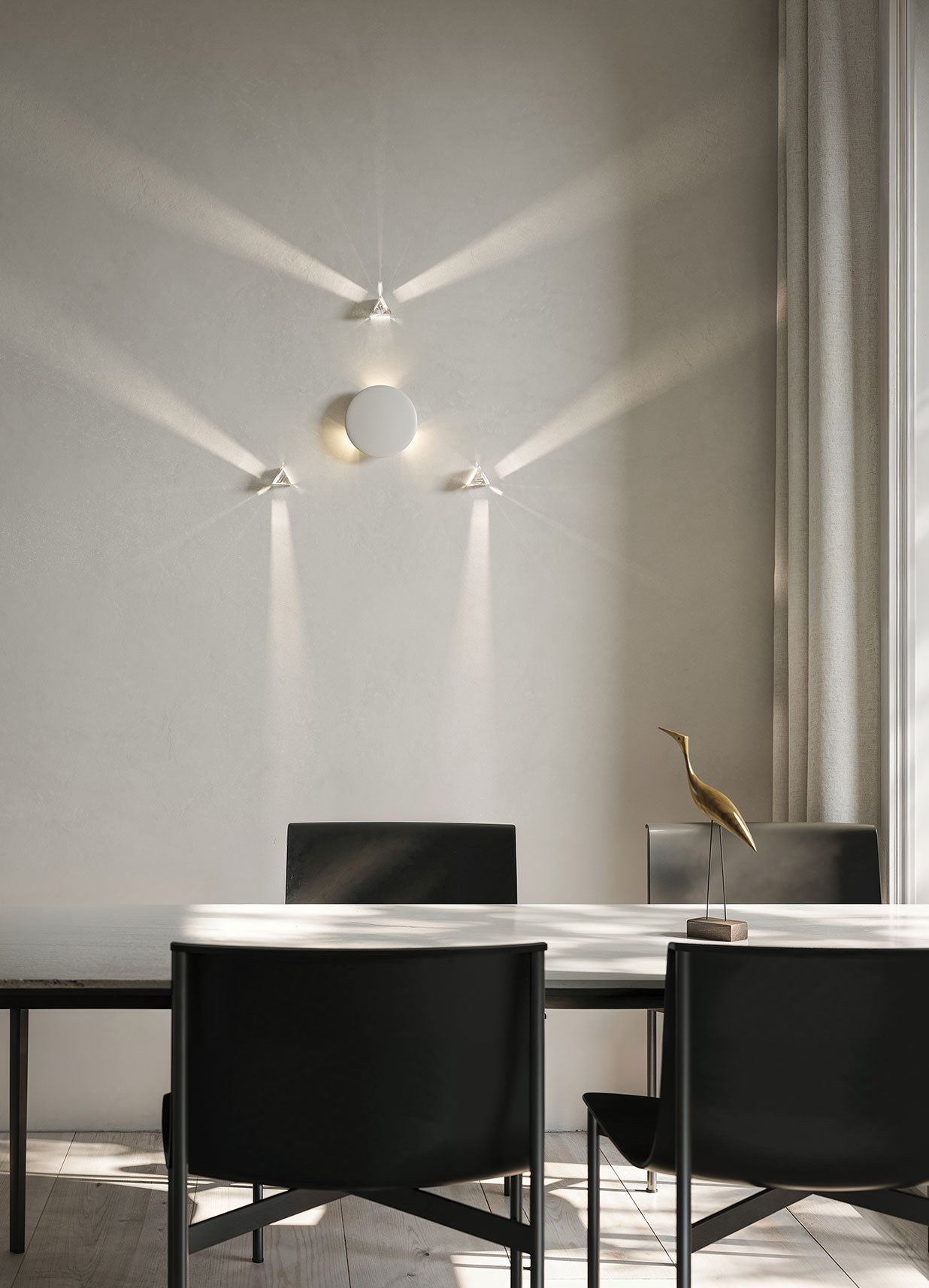 Rainbow este o aplica de perete care explorează interacțiunea dintre lumină și spațiu, inspirată de jocul fascinant al refracției. Proiectul pornește de la studiul modului în care lumina se descompune și se reflectă, generând efecte vizuale spectaculoase și nuanțe schimbătoare.