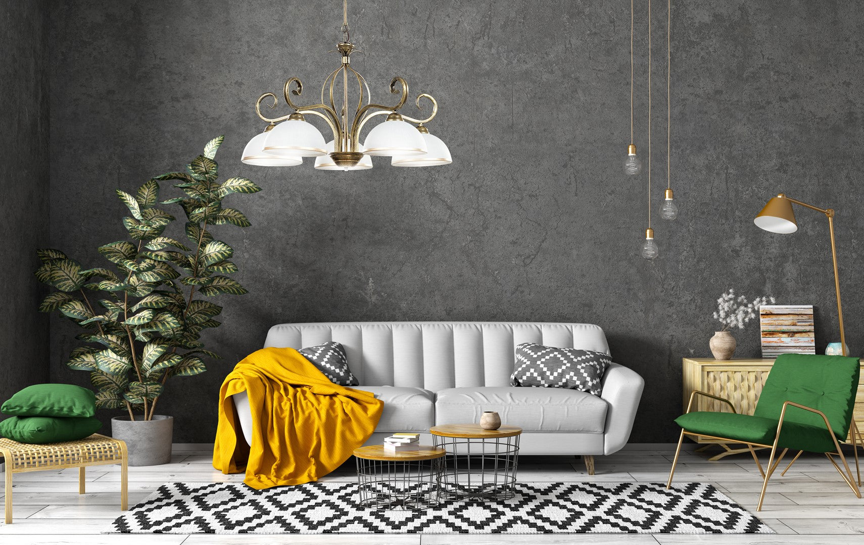 - Finisaj abajur: Alb/Auriu