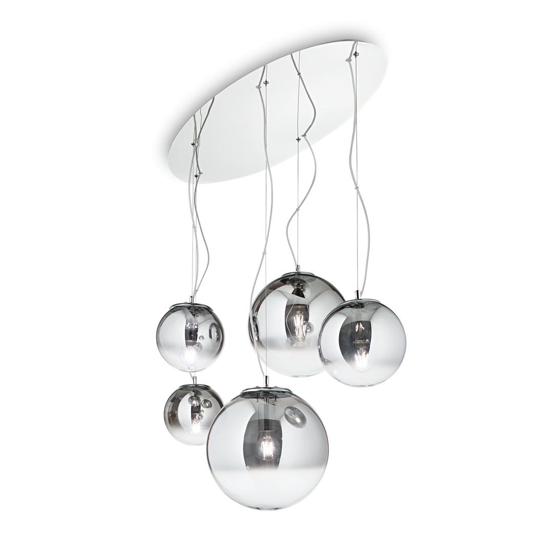 Lustra suspendata cu baza ovala si 5 globuri crom Mapa
