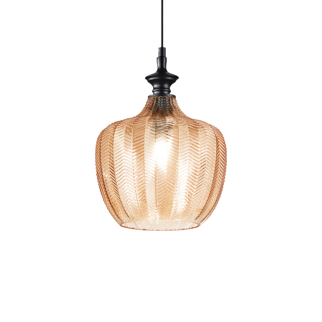Lustra suspendata cu abajur chihlimbar din sticla texturata Lord