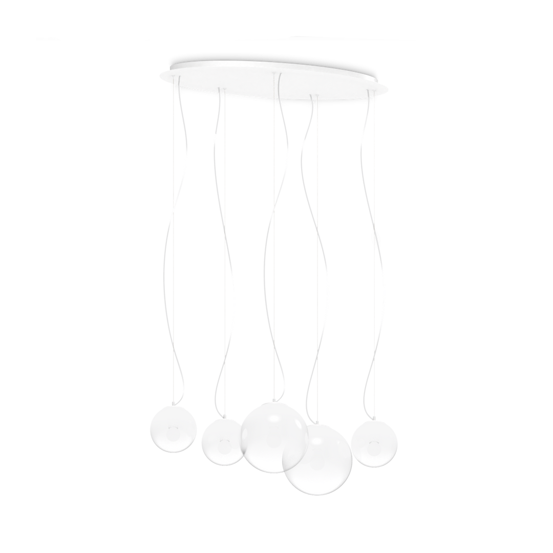 Lustra suspendata cu baza ovala si 5 globuri transparente Mapa