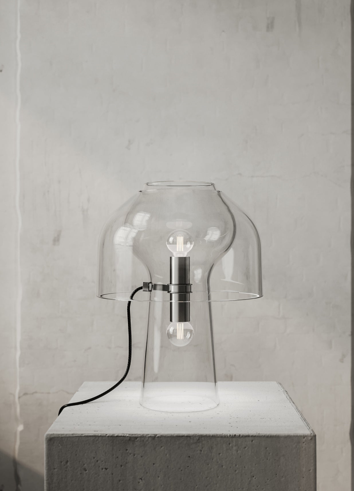 - o variantă transparentă, unde baza și abajurul lasă să se întrevadă cele două surse de lumină ascunse în interior;