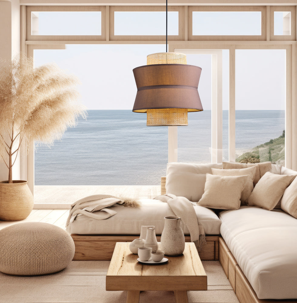 Pendul cu abajur dublu din ratan si material Rika