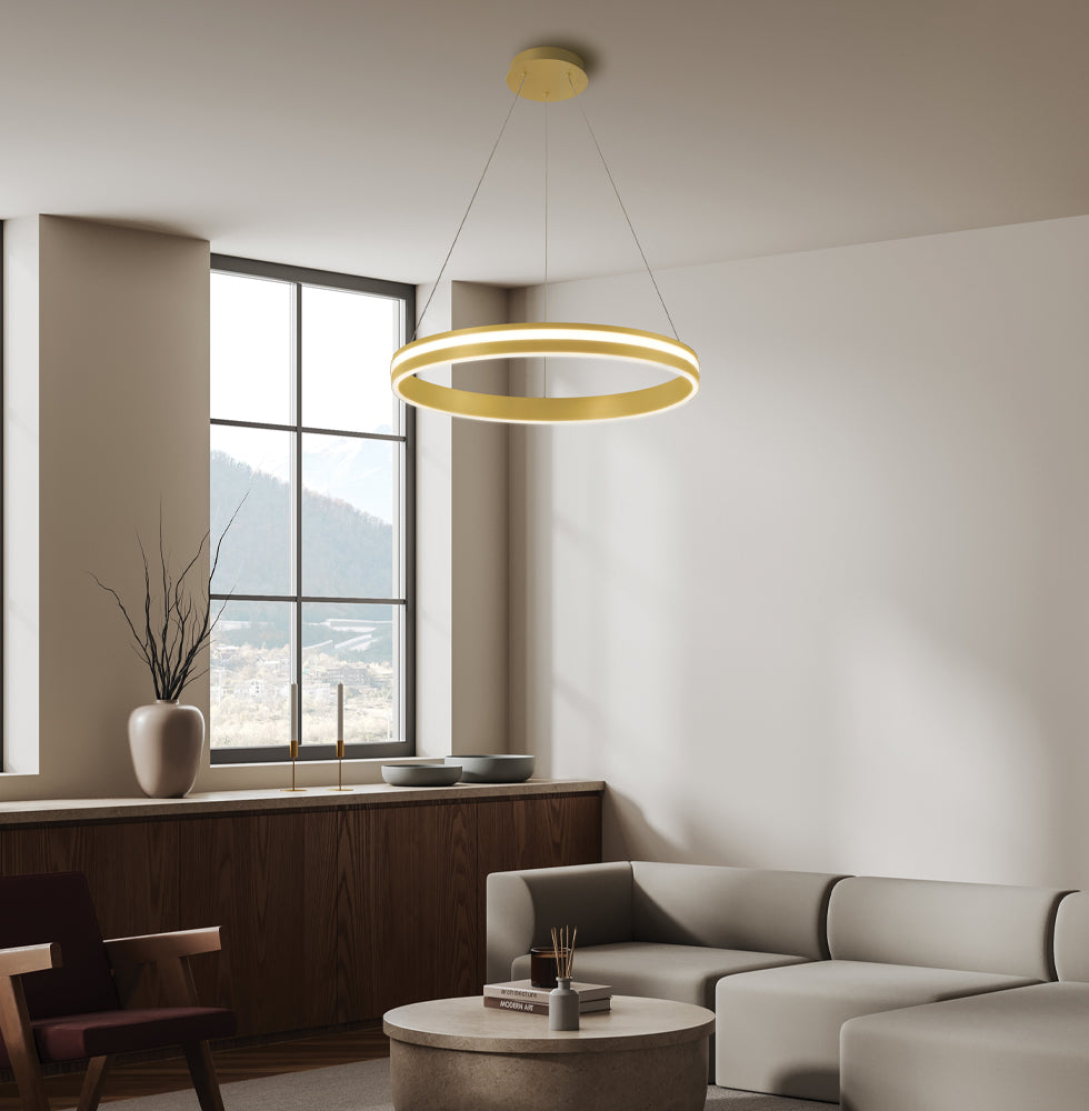 Lustra aurie cu cerc led iluminat in exterior Nesos