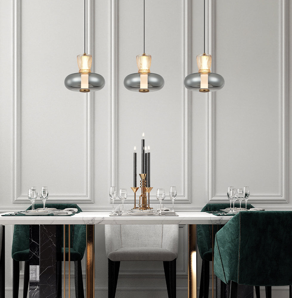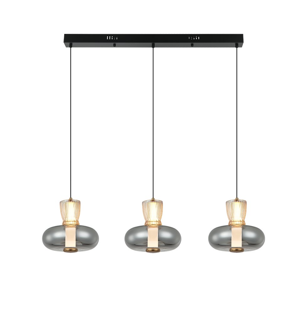 Lustra cu baza liniara si 3 pendule din sticla Sirel