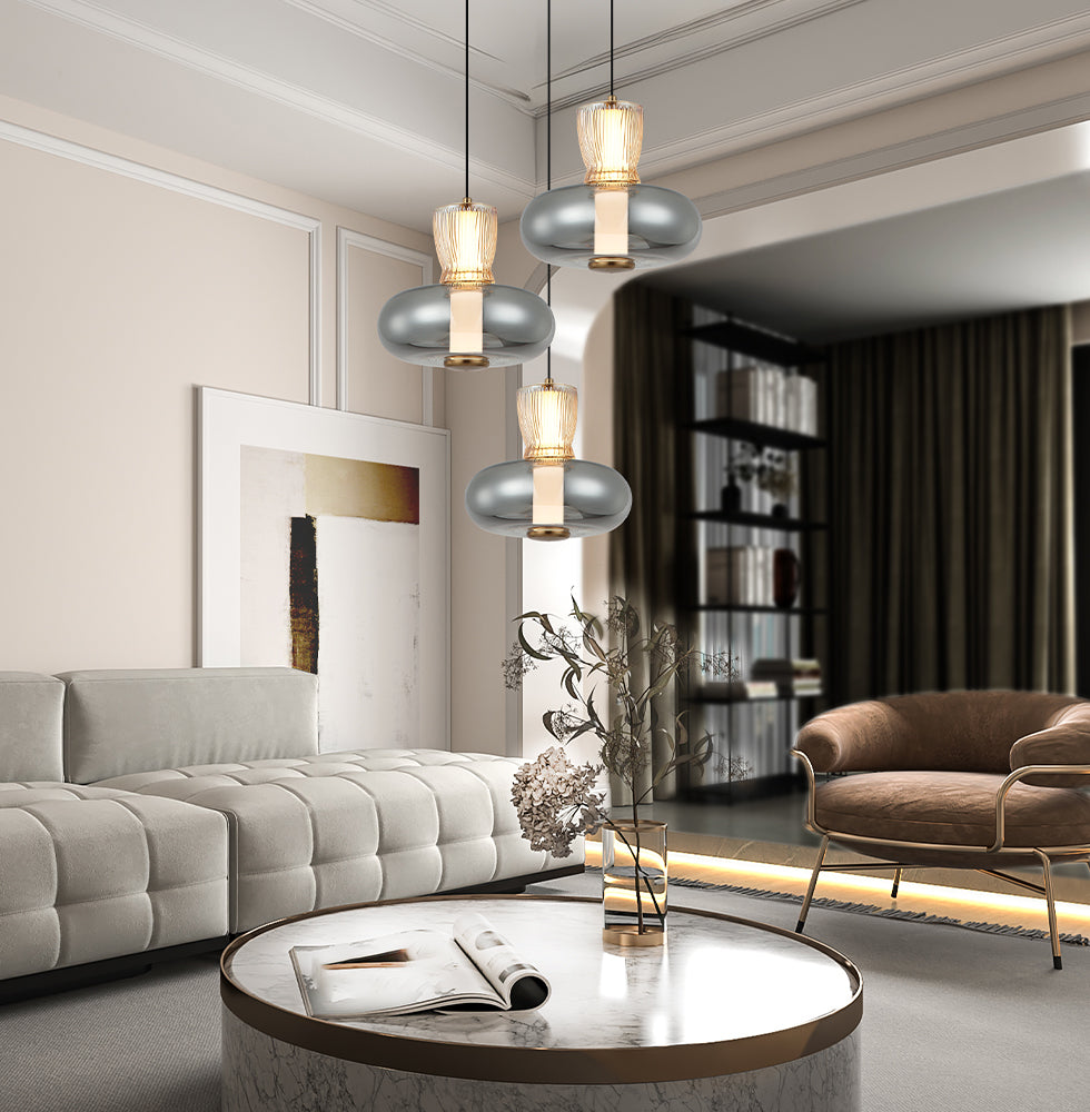 Lustra cu baza rotunda si 3 pendule din sticla Sirel